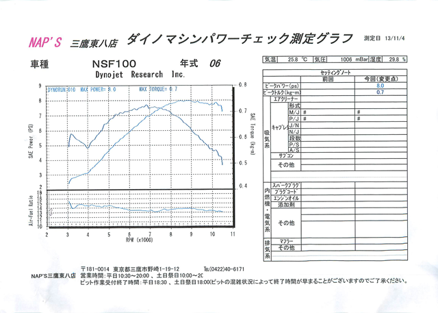 NAP'S 三鷹東八店のダイノマシンにて測定。
