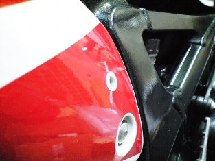 RS や SP にはリアカウルにリアサスの調整用の穴があいているようなのでマネしてドリルで穴をあける。