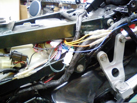 インジゲーター類は元の配線から取り、ターンランプについては整流ダイオードを使って回路を分離しました。