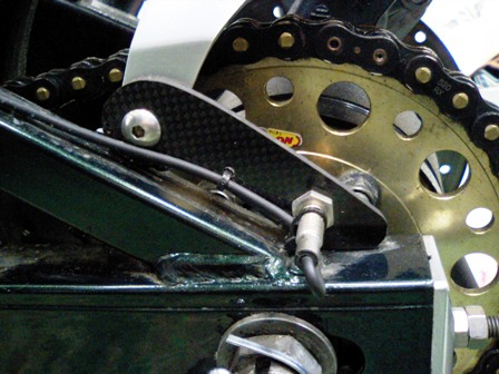 スピードはリアスプロケットから取り、ステーはメーターパネルを作成するときに余ったカーボン板を利用して作成。