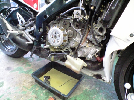 ミッションオイルはまた乳化しているし…というわけで、某緑色の人に車体とエンジンを分解、整備、再組立を頼む。