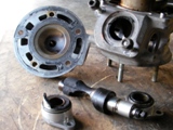 近藤内燃機に出したところオーバーホール不可とのことで戻ってきたので、一応、井上ボーリングにも尋ねてみたものの、工賃 4 万円ぐらいになります、と言われたので諦め、サイドのベアリングだけ入れ替えることにした。